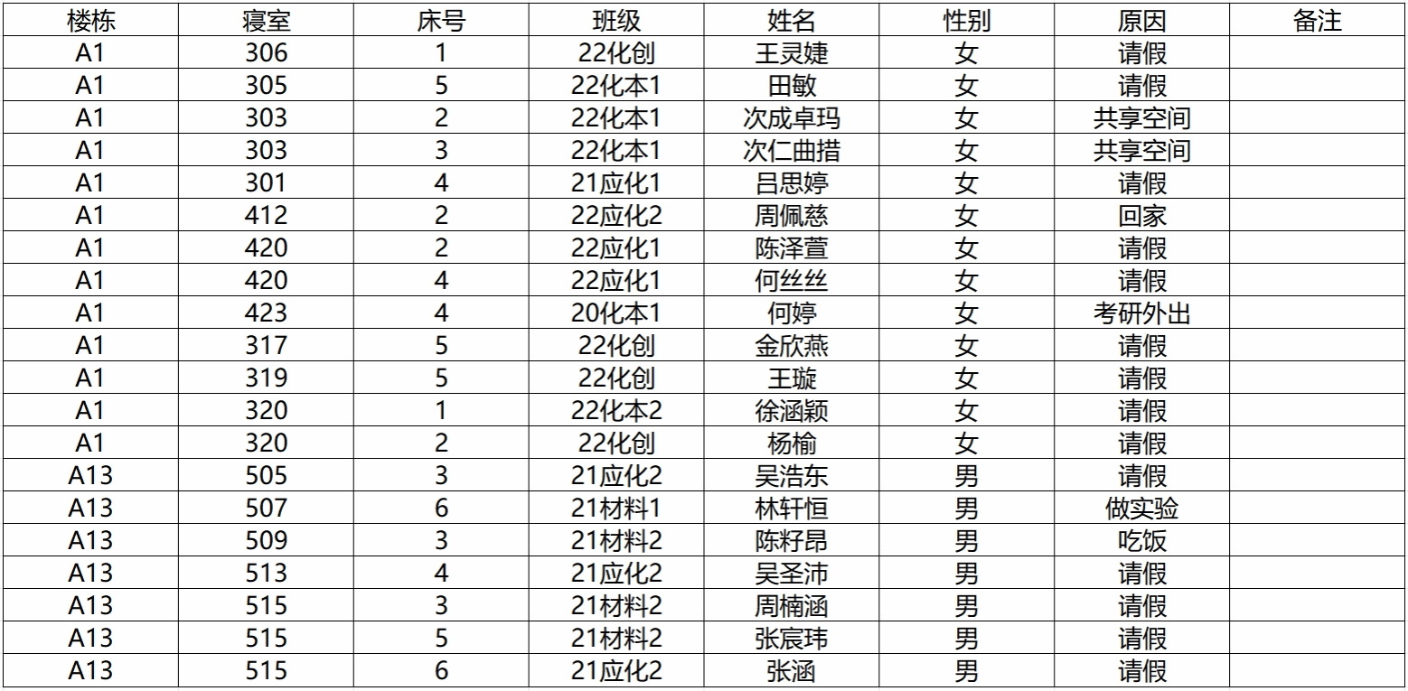 (2)若有学生在其他宿舍舍友可告知其返回核实;
