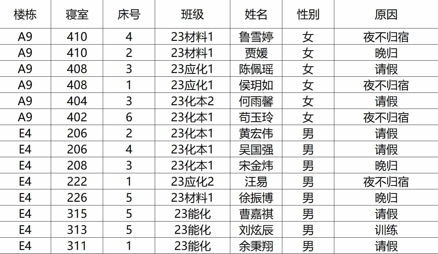 (2)若有学生在其他宿舍舍友可告知其返回核实;