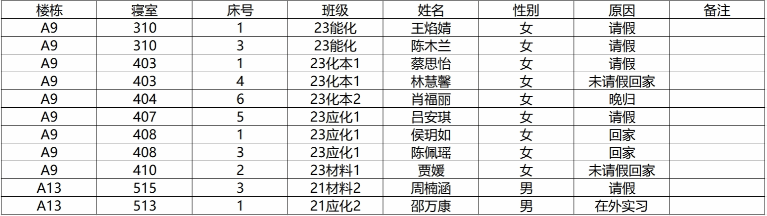 (2)若有学生在其他宿舍舍友可告知其返回核实;