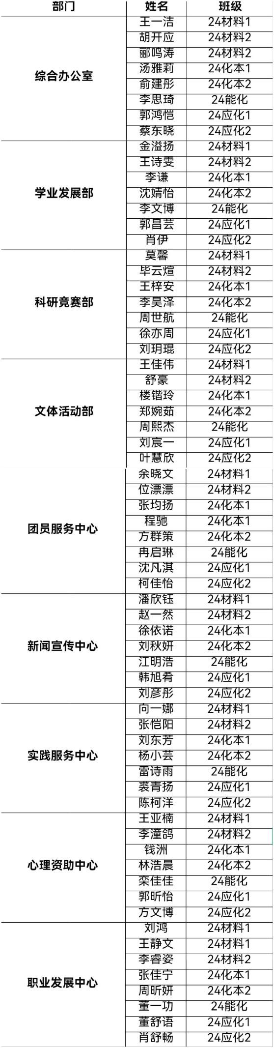 团委、学生会2024-2025学年干事。具体名单公示如下: