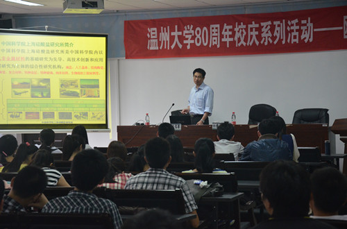 2013年5月19日,化学与材料工程学院成功举办温州大学80 周年校庆系列活动—瓯江高端学术论坛(校友专场)。应化材学院邀请,来自上海硅酸盐研究所副所长杨建华教授、浙江大学化学系陈宝梁教授参加了本次高端学术论坛,并作了专场主题报告。
