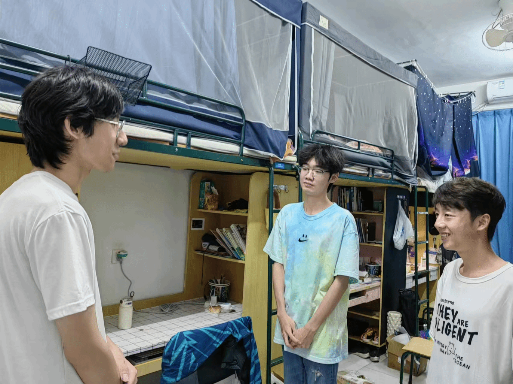 在检查完学院实验室后,学院学工团队还深入走访了学生寝室,与留校学生亲切交谈,了解他们的生活状况,并提醒学生们注意台风期间的安全防护措施,尽量减少外出,将阳台上的物品放置室内摆放等,确保极端天气下学生的生命财产安全。