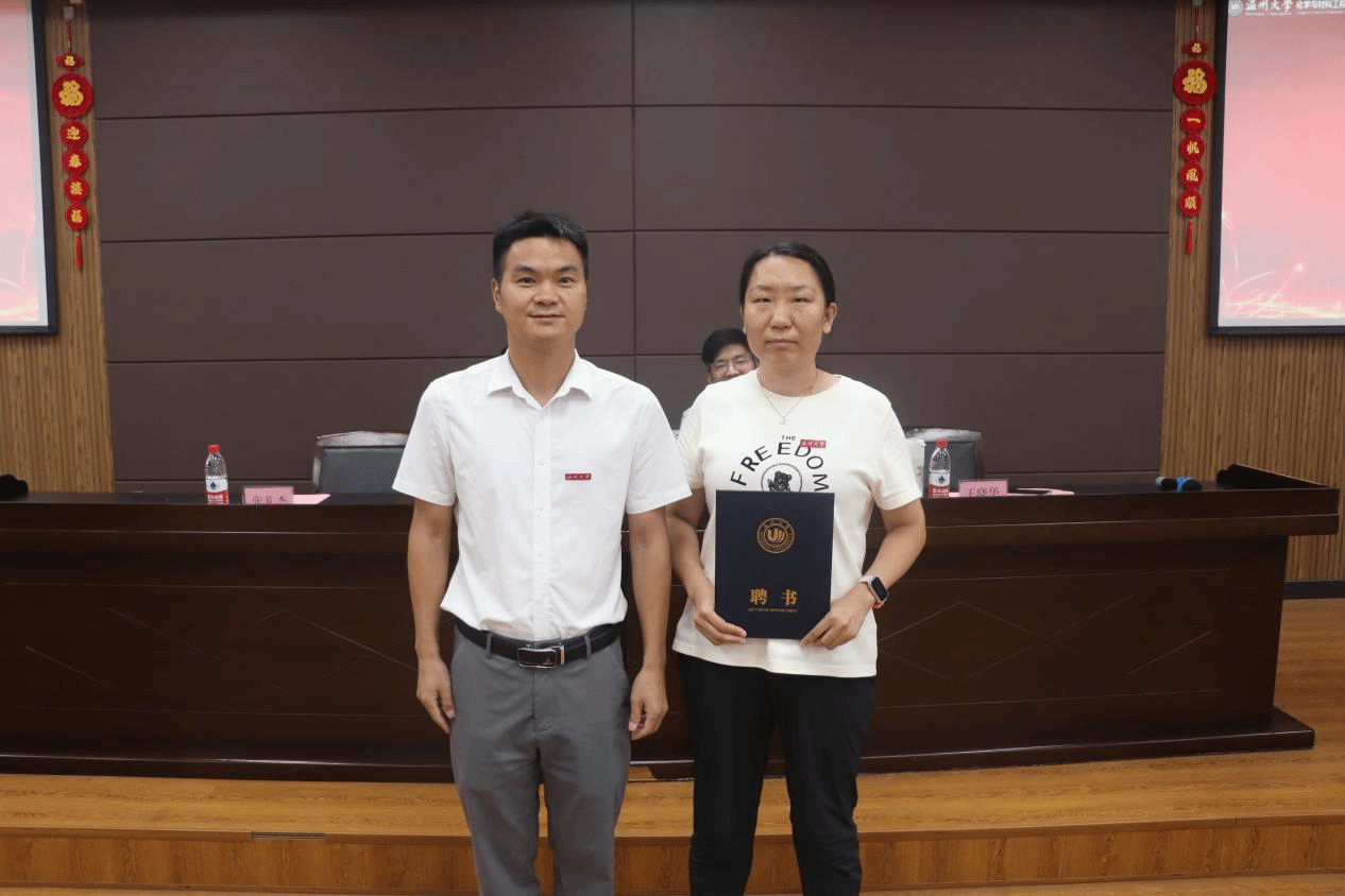 张礼杰副院长为2024级化学博士班班主任董欢欢博士颁发聘书,鼓励其发挥专业优势特长、结合研究生科研学习规律,持续深化落实三全育人,牵总抓好科研育人。