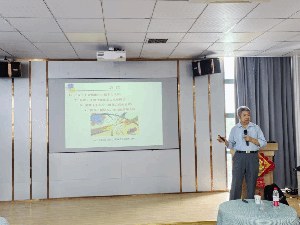 化材学院第二百四十三期瓯江学术论坛,在化材学院教工之家为师生们做题为“多组分三键聚合反应的开发研究”学术讲座。讲座由化材学院黄小波教授主持。