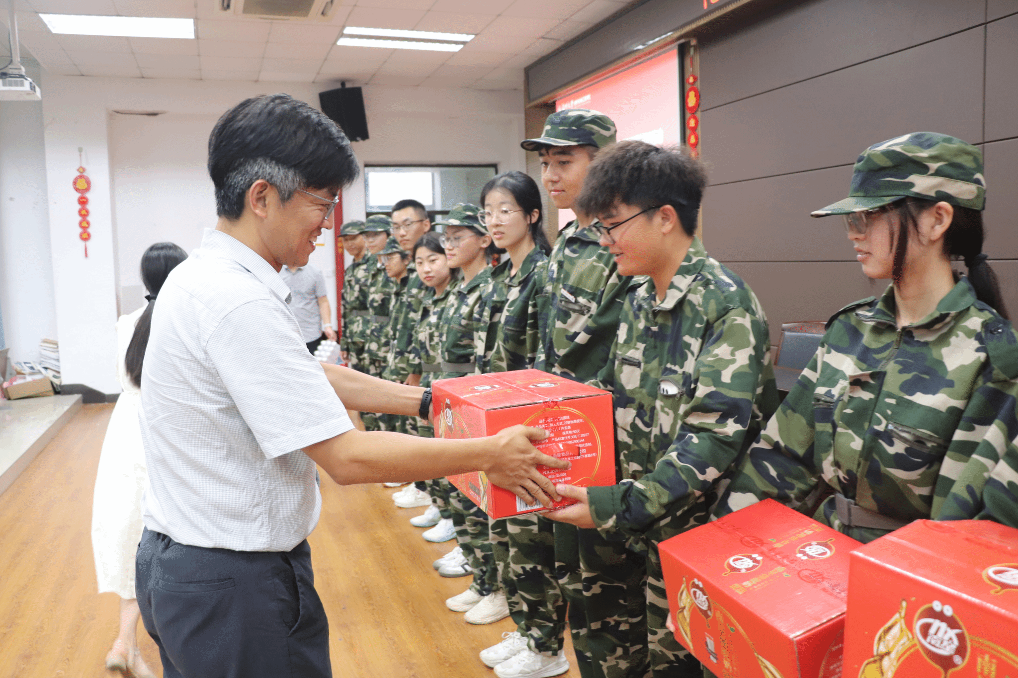 身着戎装展英姿,青春磨砺正当时。9月14日下午16:00,值此中秋来临之际,学院为2024级军训新生在11C-401教室组织小而温馨的慰问活动暨“劳育+安全”微专题教育。学院党委书记邹超、党委副书记王晓华出席,学工办辅导员以及全体军训新生参与活动。活动由王晓华副书记主持。