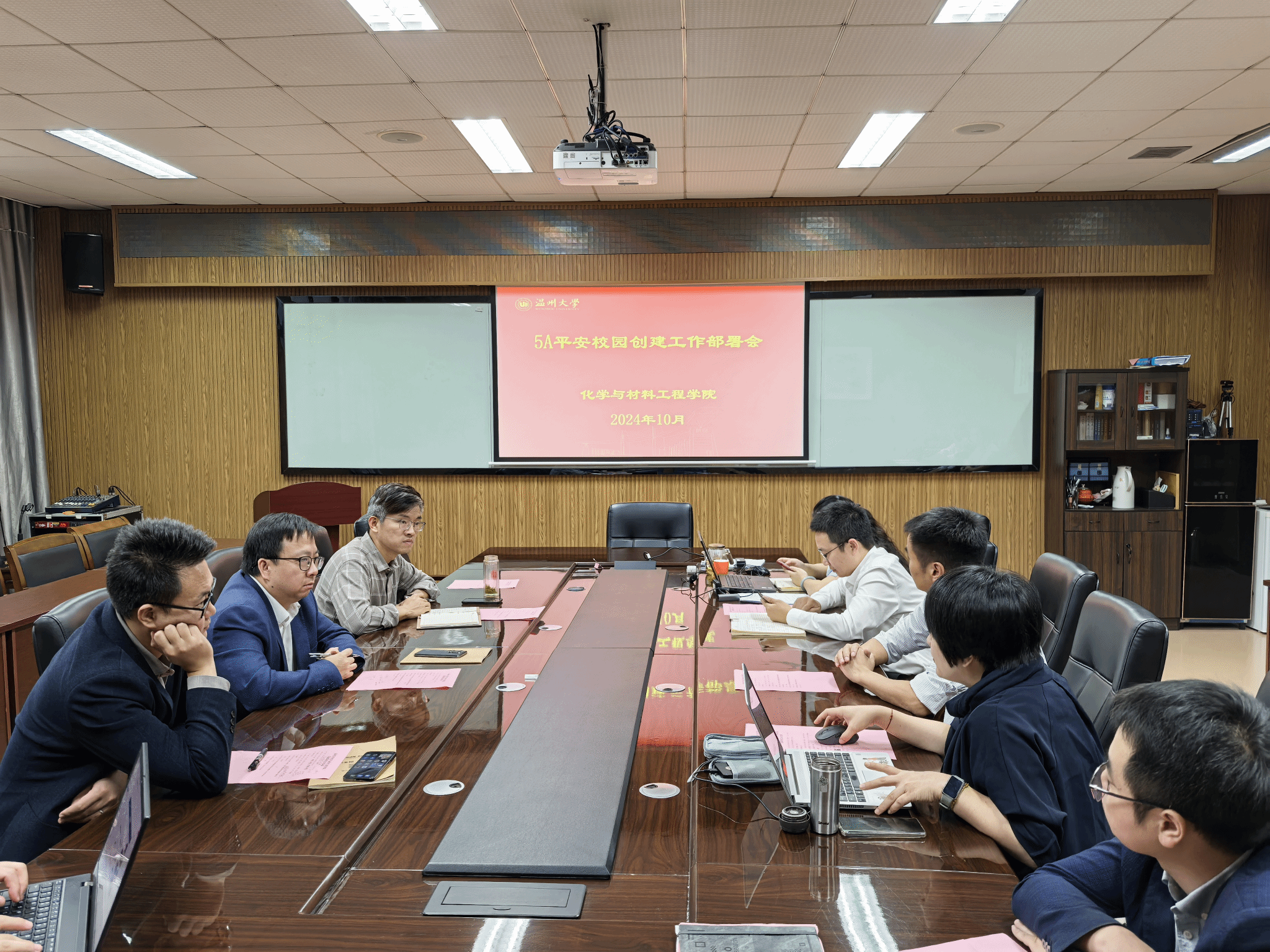 为进一步完善学院安全稳定工作长效机制,深入落实争创“5A平安校园”工作任务,10月28日上午,化学与材料工程学院在11B204会议室召开5A平安校园创建工作部署会。会议由学院党委书记邹超主持,学院领导班子出席、全体行政人员及实验中心相关负责同志与会。