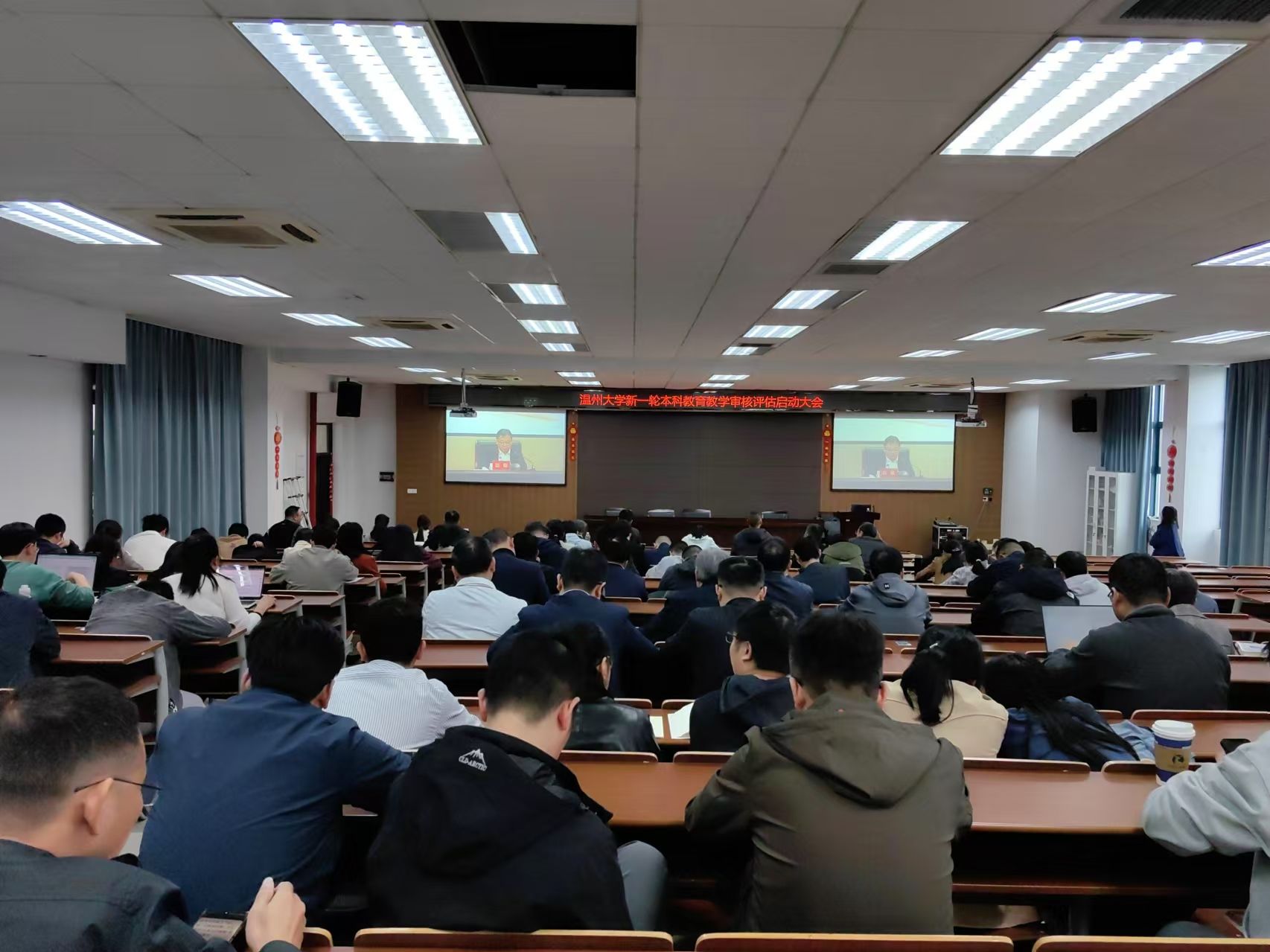 为确保2025年本科教育教学审核评估工作顺利进行,学校于2024年11月20日隆重召开了“温州大学新一轮教育教学审核评估启动大会”。化学与材料工程学院109位教职工在南11C401分会场参加会议。此次大会旨在统一思想、明确目标、凝聚力量,为即将到来的审核评估工作吹响冲锋号。