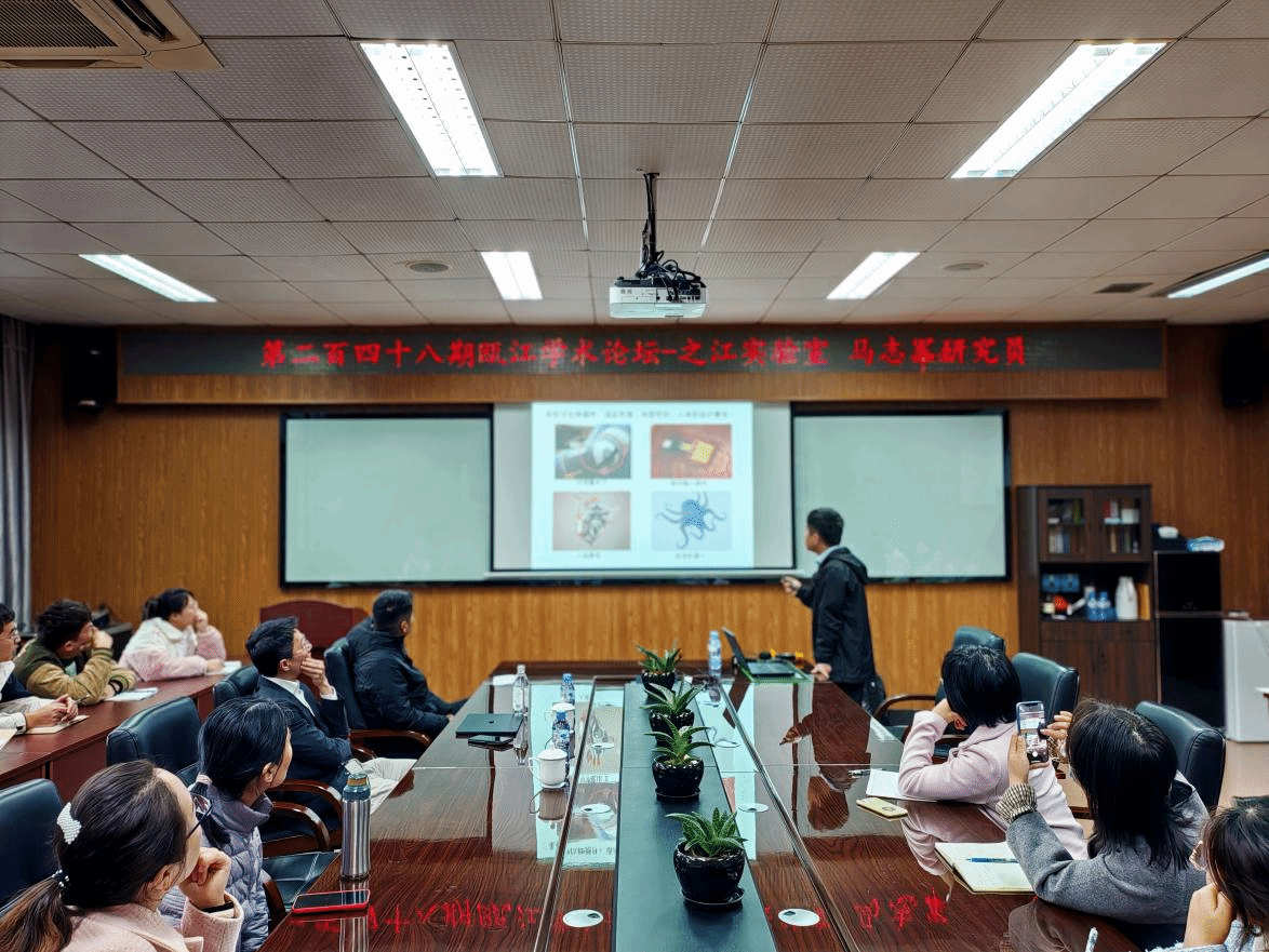 2024年11月29日下午,马志军研究员做客温州大学化材学院第二百四十八期瓯江学术论坛,在化材学院204会议室为师生们做题为“液态金属赋能的透气性可拉伸电子材料和器件”学术讲座。讲座由化材学院的张礼杰副院长主持。