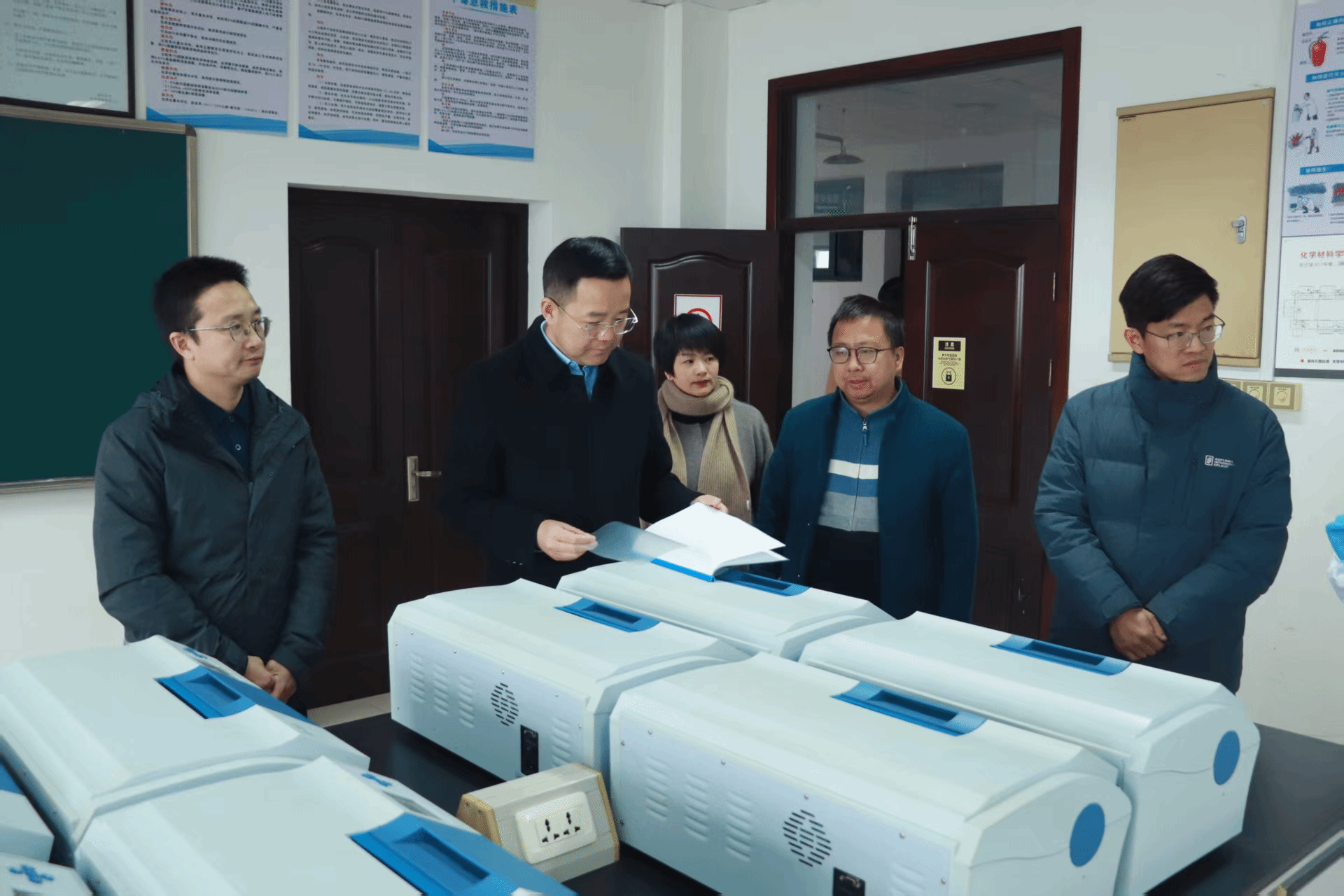 为确保新学期各项工作平稳有序开展,2月23日上午,温州大学副校长王尧骏一行来化学与材料工程学院检查指导开学准备与安全稳定工作。化材学院院长杨植、党委书记邹超、副院长金辉乐、副院长张礼杰、副书记王晓华等学院领导班子成员陪同。