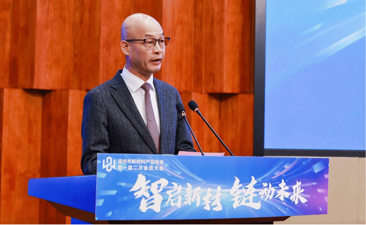 温州市副市长陈宽对大会的召开表示祝贺。他强调要主动抢抓产业发展良机,以创新驱动破局、以开放合作聚力,在新一轮产业变革中勇立潮头;希望协会继续发挥好桥梁纽带作用,加力加码做好产业服务,做政府政策制定的好帮手,做行业创新发展的主引擎,做企业合作交流的连接桥,为全市新材料产业高质量发展再立新功。