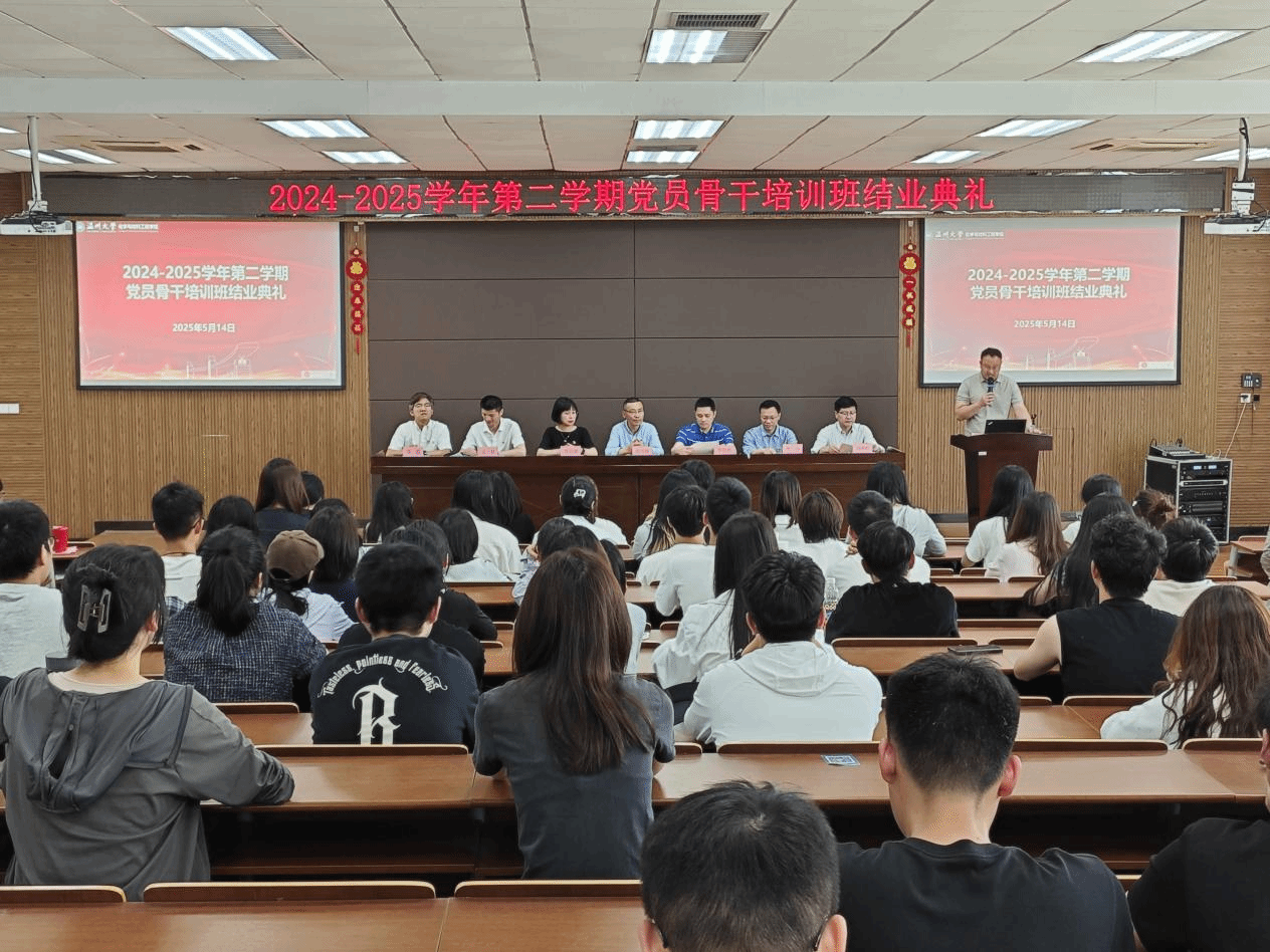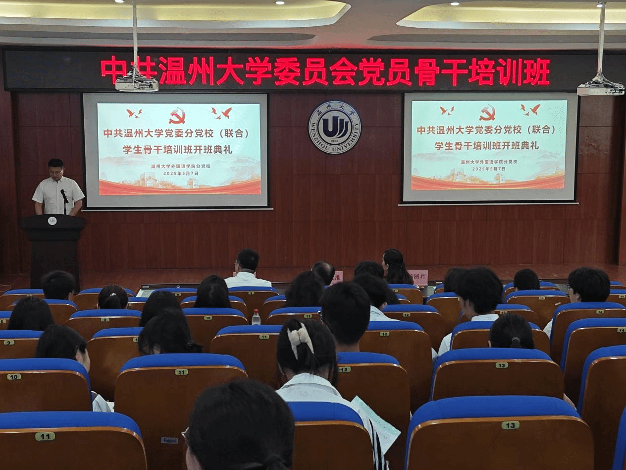 中共温州大学委员会党校学院分党校(联合)2024-2025学年第二学期党员骨干培训班于2025年5月7日至5月14日成功开展,整个培训班由开班仪式、主题讲座、视频学习、结业考试及结业仪式组成。