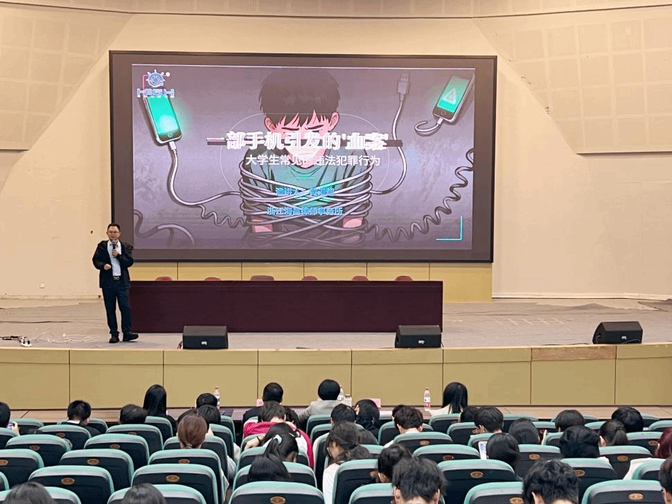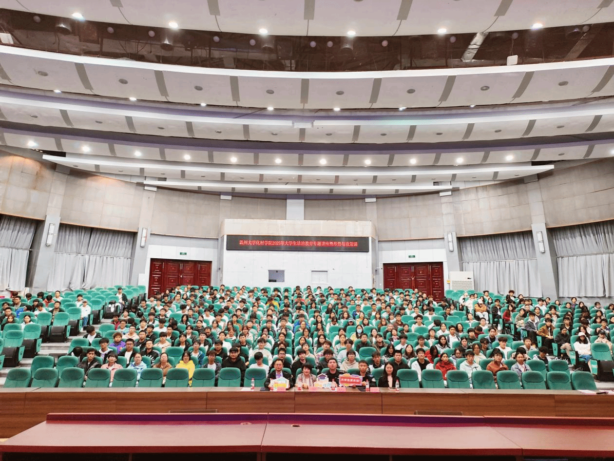 为落实大学生法治教育工作要求,提升学生法治观念与安全防范意识,筑牢校园安全防线,11月3日18时30分,化材学院在南9号楼报告厅举办大学生法治教育专题讲座。茶山派出所潘鸿浩警长、陈志坚警官,浙江海昌律师事务所合伙人黄漫超律师,院党委副书记王晓华,学工办辅导员,2025 级全体本研新生及各年级班长、团支书、安全委员参会。讲座由“筑安”工程专项辅导员李政主持。