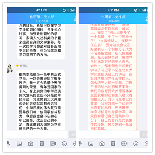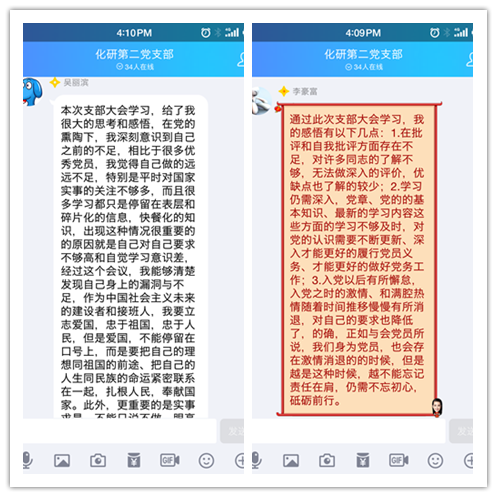 2018年6月13日晚上,化材学院研究生第二党支部在化材楼11B-204室召开预备党员转正大会,大会主要讨论贾晋虹、王翻同志由预备党员转为正式党员的问题,参与本次大会的有研究生辅导员邹涌彬老师,研究生第二党支部全体党员、预备党员。本次大会由研究生第二党支部书记李鸿辰主持。