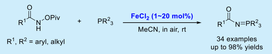 论文题目:Construction of N Acyliminophosphoranes via Iron(II)-Catalyzed Imidization of Phosphines with N Acyloxyamides.