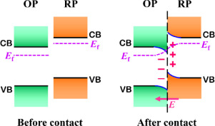 光催化是一种利用清洁太阳能的技术,具有广阔的应用前景。然而,单一光催化剂的光生电子和空穴对的振动弛豫等衰变过程会造成能量损失,难以实现100%的能量利用率。另外,单一光催化剂还面临两个方面的问题:(1)光吸收特性与其氧化还原能力之间的矛盾,即宽范围的太阳光吸收需要窄带隙的半导体材料,而为光催化反应提供强的驱动力则需要宽带隙半导体材料;(2)单一光催化剂的光生电子和空穴对间存在强的库仑引力,这导致光生电子-空穴对的易发生复合。为解决上述问题,需构建出合适的异质结光催化剂。