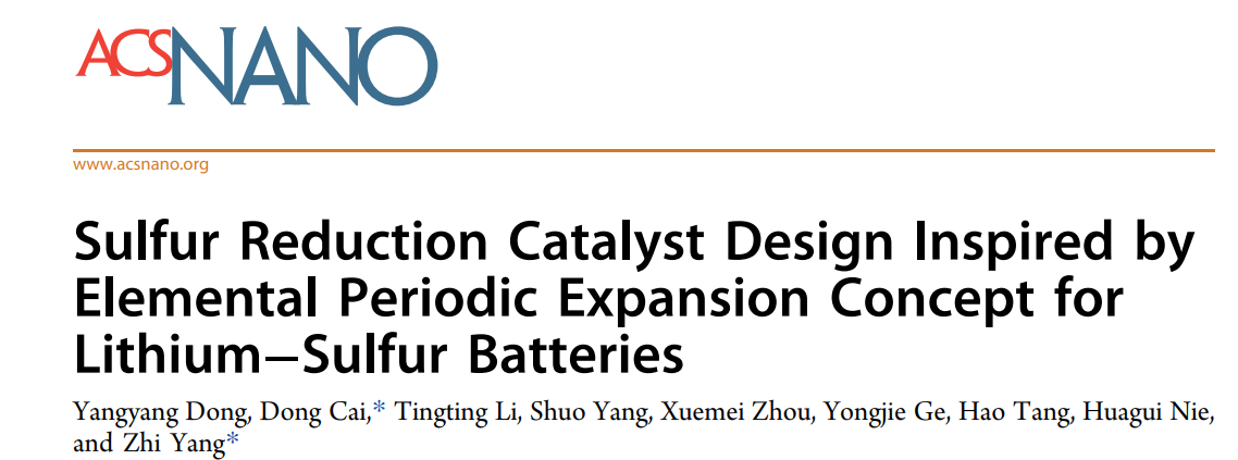 近日,我校杨植教授课题组在国际著名化学期刊《ACS Nano》发表了题为”Sulfur Reduction Catalyst Design Inspired by Elemental Periodic Expansion Concept for Lithium–Sulfur Batteries”的论文。该工作受启发于天然酶中Fe/N活性位点具有高效的氧还原反应特性(Fe/N→ORR),提出周期扩充催化的概念:利用位于Fe/N下一周期的Ru/P,构建仿生催化分子,协同催化锂硫电池中硫的还原反应(Ru/P→SRR)。