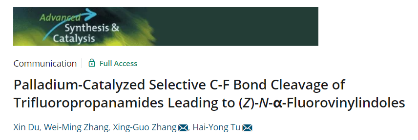 论文题目:Palladium-Catalyzed Selective C-F Bond Cleavage of Trifluoropropanamides Leading to (Z)-N-α-Fluorovinylindoles