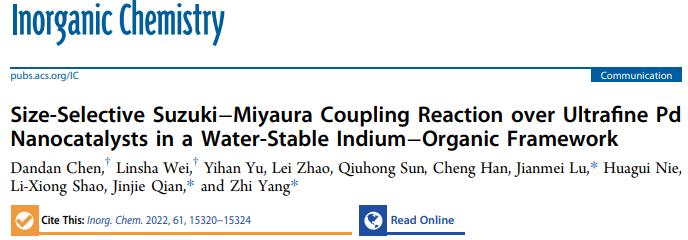 本研究工作为MOF基复合材料在多相催化中的广泛应用开辟了新的道路。近日,这一研究结果以“Size-Selective Suzuki-Miyaura Coupling Reaction over Ultrafine Pd Nanocatalysts in a Water-Stable Indium-Organic Framework”为题发表在《Inorganic Chemistry》,人妻NTR