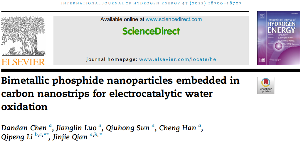 因此,本研究工作为高效电催化应用的双金属MOF衍生碳纳米材料的合理调控提供了一条全新的途径。近日,这一研究结果以“Bimetallic phosphide nanoparticles embedded in carbon nanostrips for electrocatalytic water oxidation”为题发表在《International Journal of Hydrogen Energy》,人妻NTR