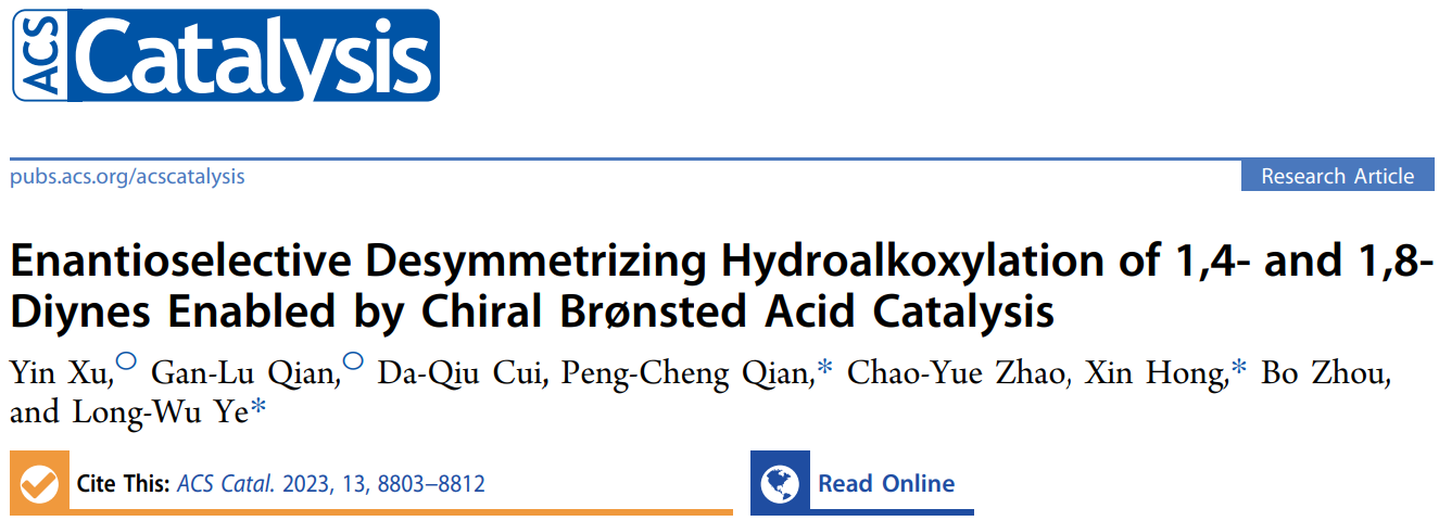 这一成果近期发表在ACS Catalysis (DOI: 10.1021/acscatal.3c01680),温州大学为第一单位,我院博士后许胤为第一作者,我院钱鹏程教授、厦门大学叶龙武教授、浙江大学洪鑫教授为共同通讯作者。