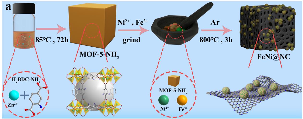 图1. FeNi@NC催化剂的制备流程图。