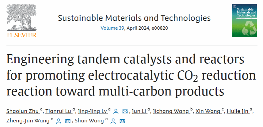 该成果以“Engineering tandem catalysts and reactors for promoting electrocatalytic CO2 reduction reaction toward multi‑carbon products”为题发表在⟪Sustainable Materials and Technologies⟫期刊(IF=9.6)上。温州大学为第一通讯单位,我院2021级硕士生朱绍均为第一作者,我院吕晶晶教授、王正军博士、王舜教授为共同通讯作者。