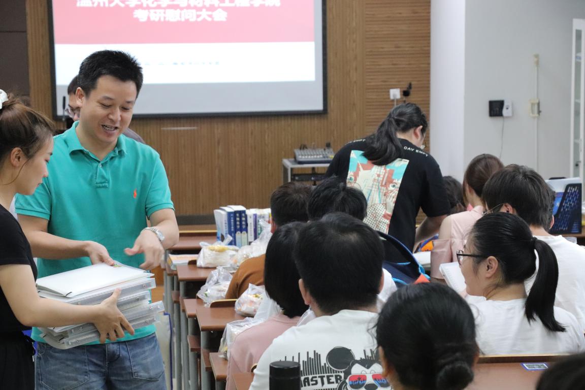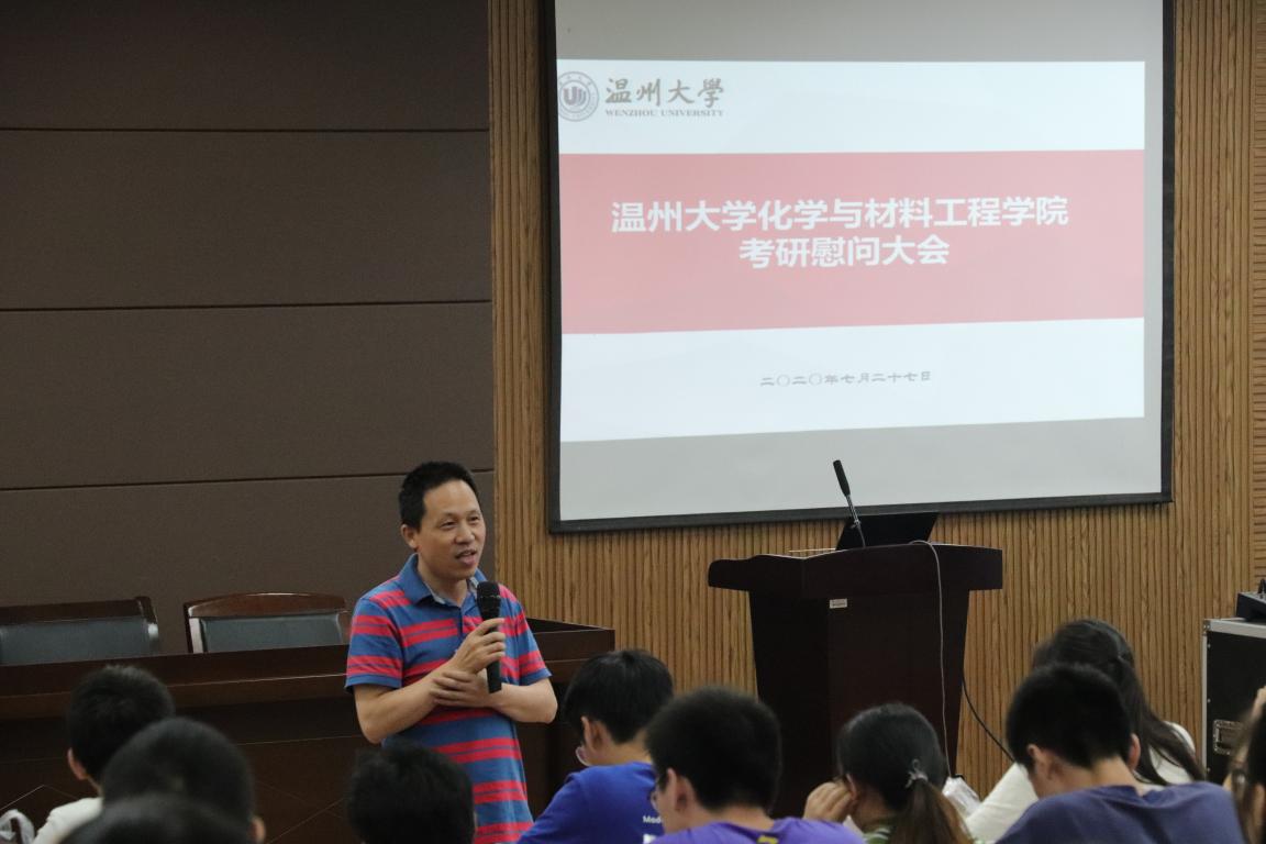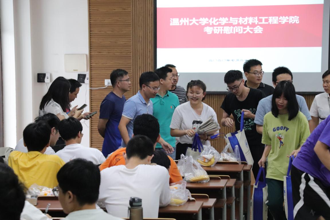 为鼓舞考研学子信心,缓解学生考前压力。2020年7月27日,温州大学化材学院院长王舜、党委书记熊琳、副院长金辉乐、副院长夏远志、党委副书记周敬业、院长助理陈锡安以及学工办辅导员孙玮玮、邹涌彬、李国朋一行前往11C-401考研自习室看望我院备战考研的学子,为他们送上关怀与祝福。