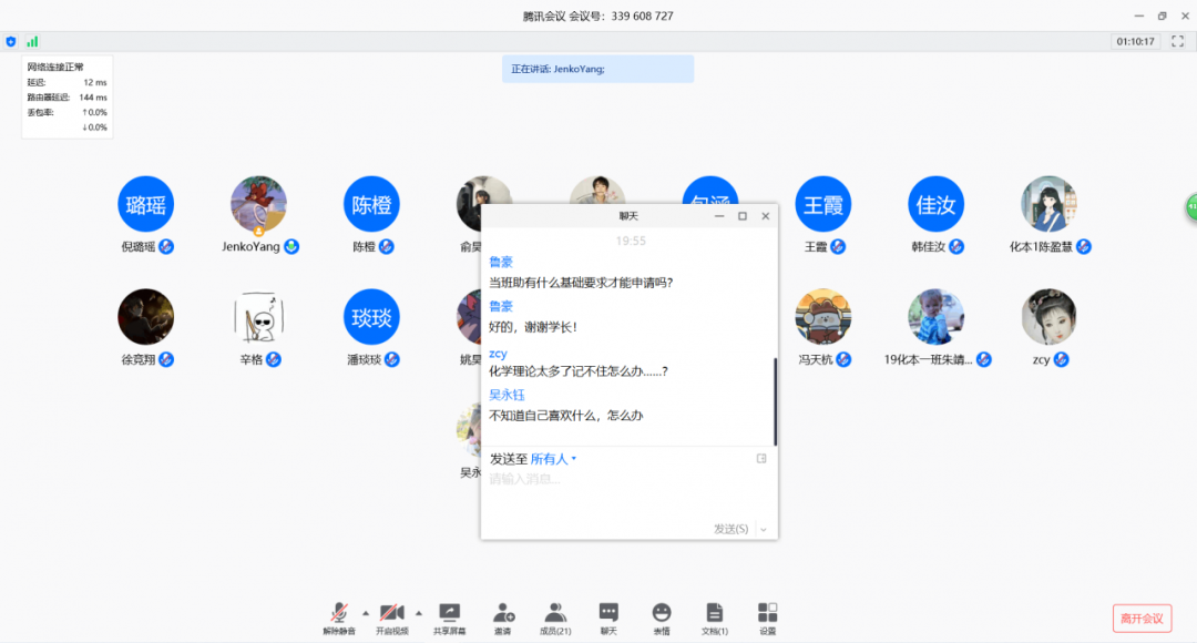 2020年4月17日晚七点,在腾讯会议开展了温州大学化学与材料工程学院第一期 “云”沙龙活动。本次“云”沙龙的主题为“从平凡迈向不凡——一个大三学生的自我修炼之路”,主讲人是来自17化学创新的杨翱杰。