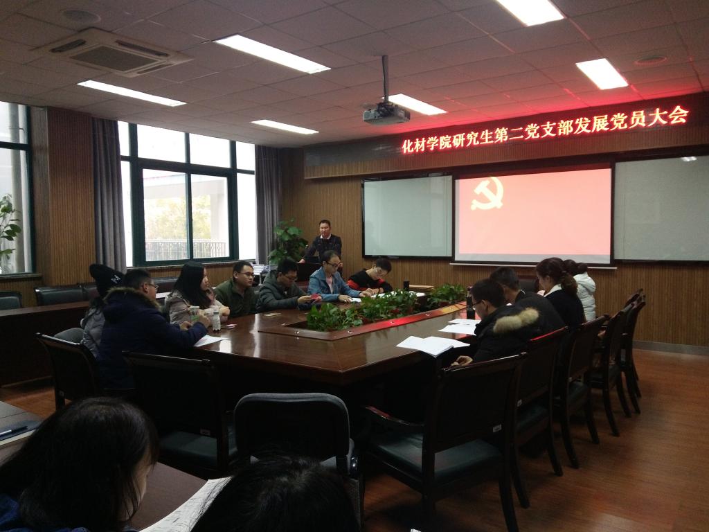 12月13日下午,温州大学化学与材料工程学院研究生第二党支部在化材楼11B-204室召开发展党员大会。大会主要讨论王宇、蒋举涛、薛欣欣、张业彤、张晓霞等5位发展对象入党问题。学院党委委员易招娣同志、研究生第二党支部全体党员以及5位发展对象参加了大会,4名重点培养对象列席会议。大会由学院研究生党建指导老师邹涌彬同志主持。