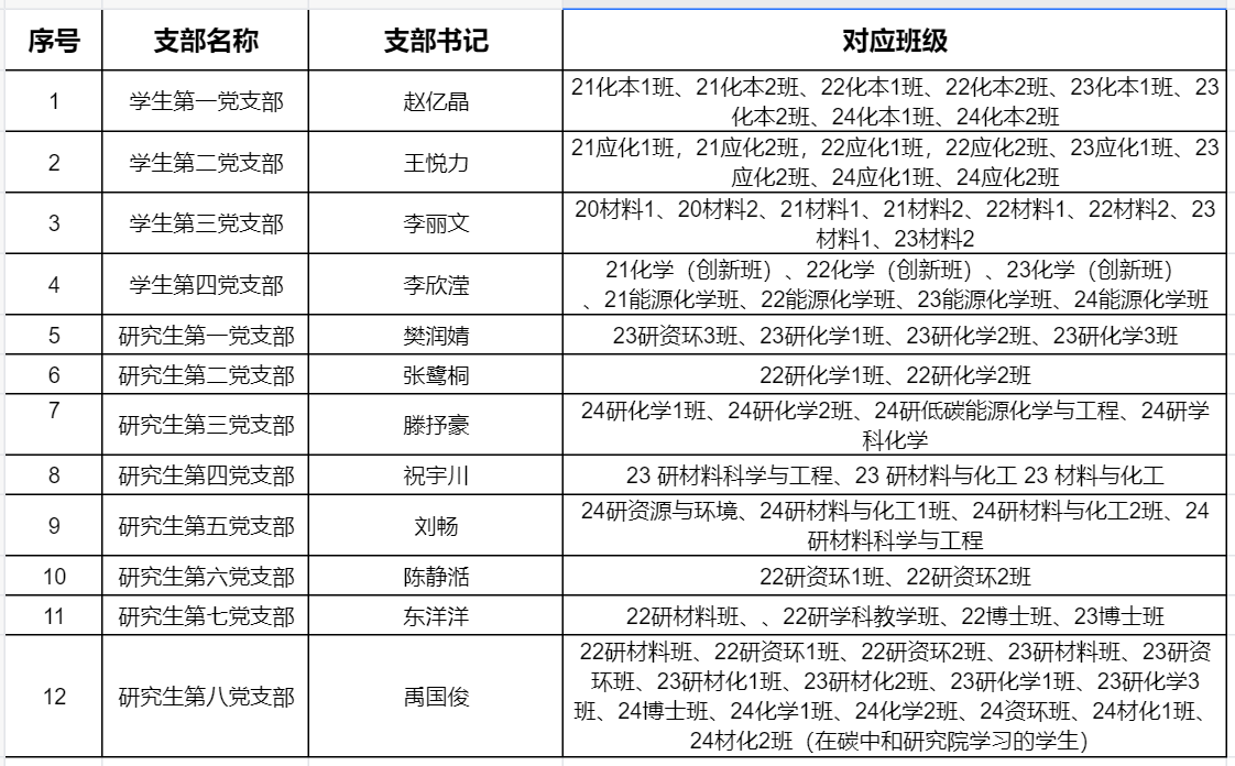 2.各专业对应党支部名称: