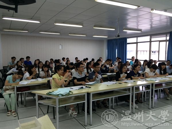 6月16日下午1:30,外面正下着淅淅沥沥的小雨,而化本班的同学和一些研究生们正兴致勃勃,迫不及待地在温大南校区9B-405期待着即将开始的有关中学化学实验创新与探究的主题讲座。本次讲座邀请到了我校校友、瓯海区第一高级中学伍强老师分享他的创新研究方法和成果。