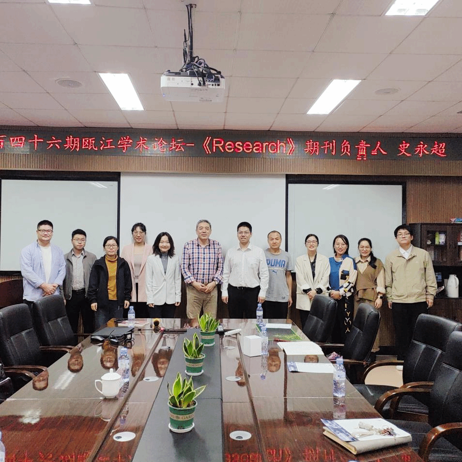 化材学院第二百四十六期瓯江学术论坛,在化材学院204会议室为师生们做《Science》伙伴期刊《Research》推介宣讲会。讲座由化材学院的陈亦皇教授主持。