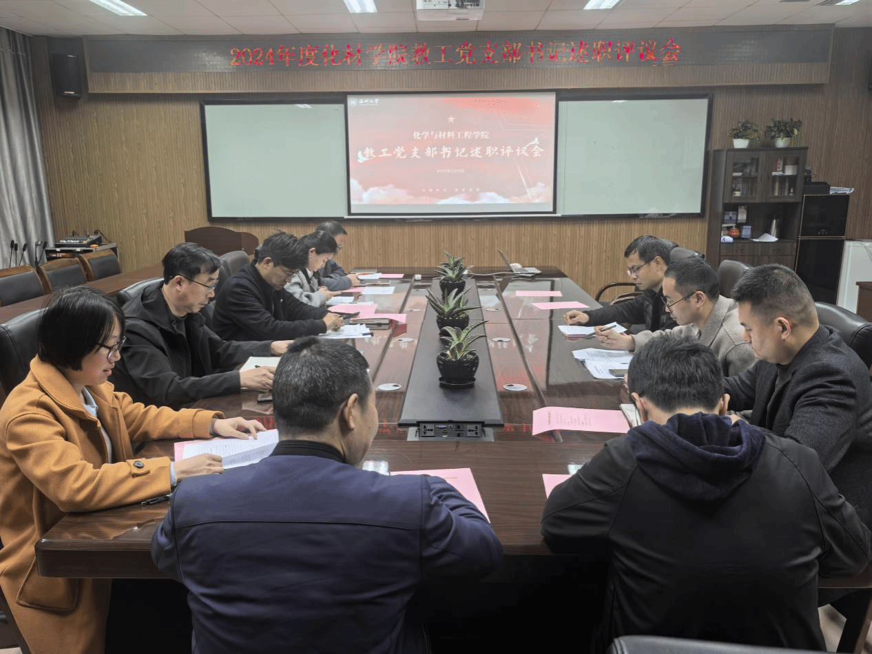 为深入学习贯彻党的二十届三中全会精神和习近平总书记关于党的建设的重要思想,聚焦巩固党纪学习教育成果,扎实推进“一融双高”建设,以高质量党建引领学科发展和拔尖人才培养,2025年3月4日下午,化材学院在化材楼11B204会议室召开2024年度党支部书记述职评议会。会议由学院党委书记邹超主持,学院教工党支部书记、党支部委员代表参加会议。