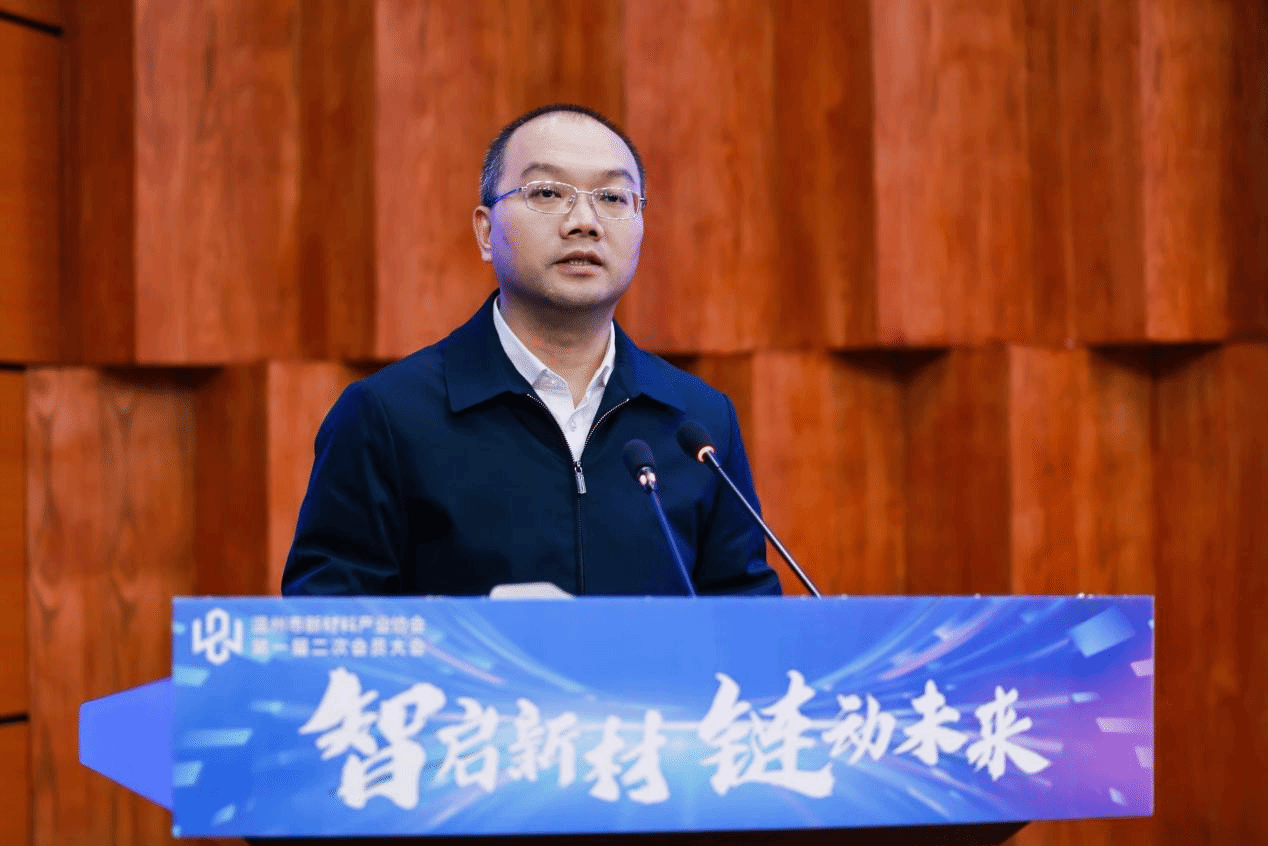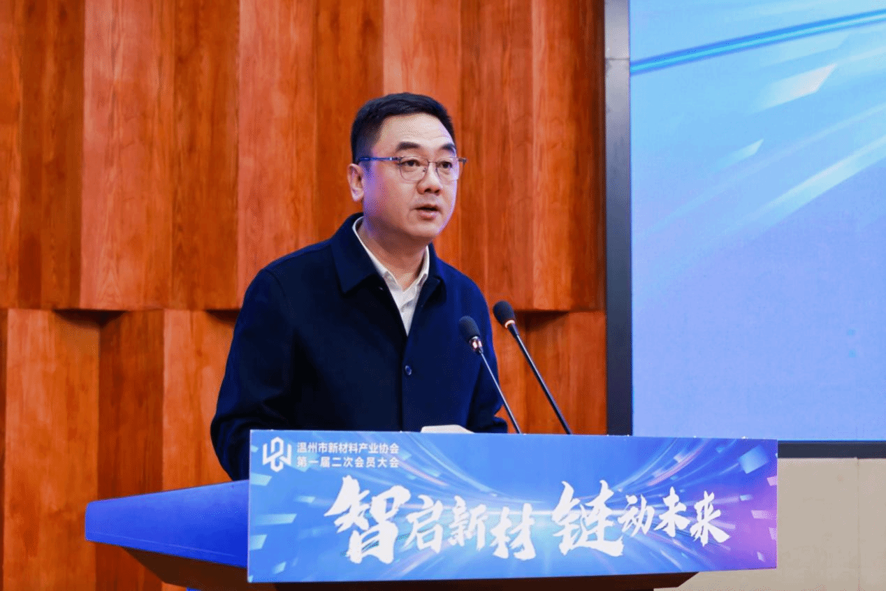 温州市副市长陈宽对大会的召开表示祝贺。他强调要主动抢抓产业发展良机,以创新驱动破局、以开放合作聚力,在新一轮产业变革中勇立潮头;希望协会继续发挥好桥梁纽带作用,加力加码做好产业服务,做政府政策制定的好帮手,做行业创新发展的主引擎,做企业合作交流的连接桥,为全市新材料产业高质量发展再立新功。