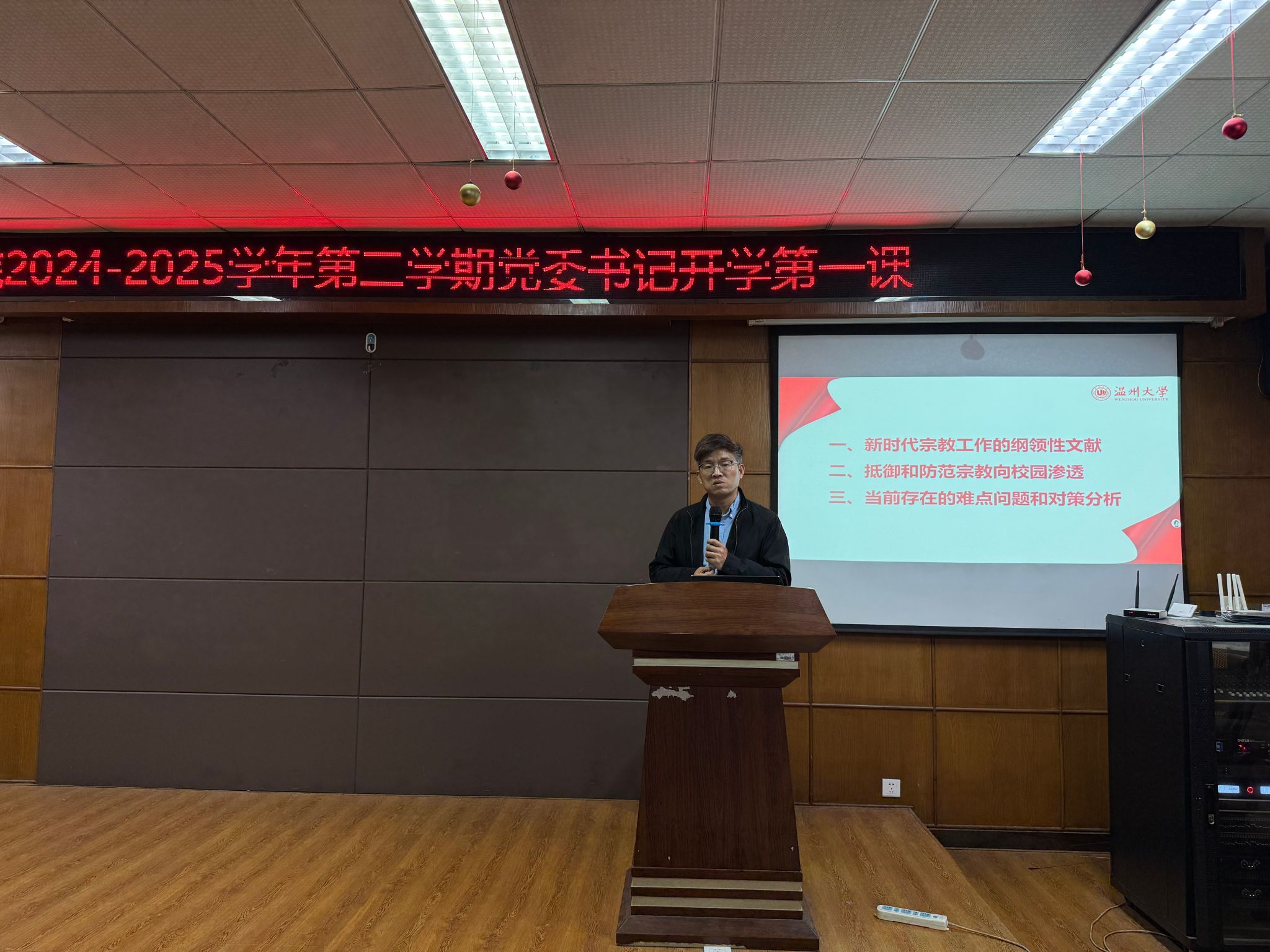 为了深入学习贯彻马克思主义宗教观,提升青年学生对宗教问题的理性认识与辨析能力,切实筑牢学生思想防线,2月27晚,学院党委书记邹超以“马克思主义宗教观”为主题,为全体学生讲授“党委书记第一课”,全体本研学生线上线下参与。