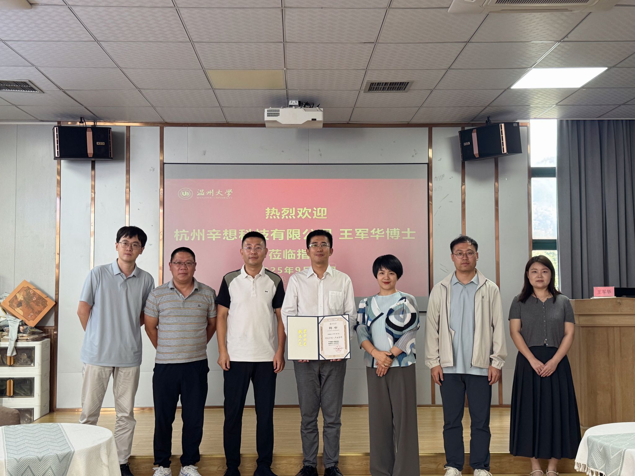 论坛伊始,温州大学化学与材料工程学院党委副书记王晓华为王军华博士颁发“产业导师”聘书,标志着双方在产教融合与校企协同育人方面迈出实质性一步。王晓华指出,聘请产业导师是学院推进人才培养模式改革、强化实践教学环节的重要举措,期待王博士将丰富的产业经验融入教学与科研,助力学生成长和学科发展。