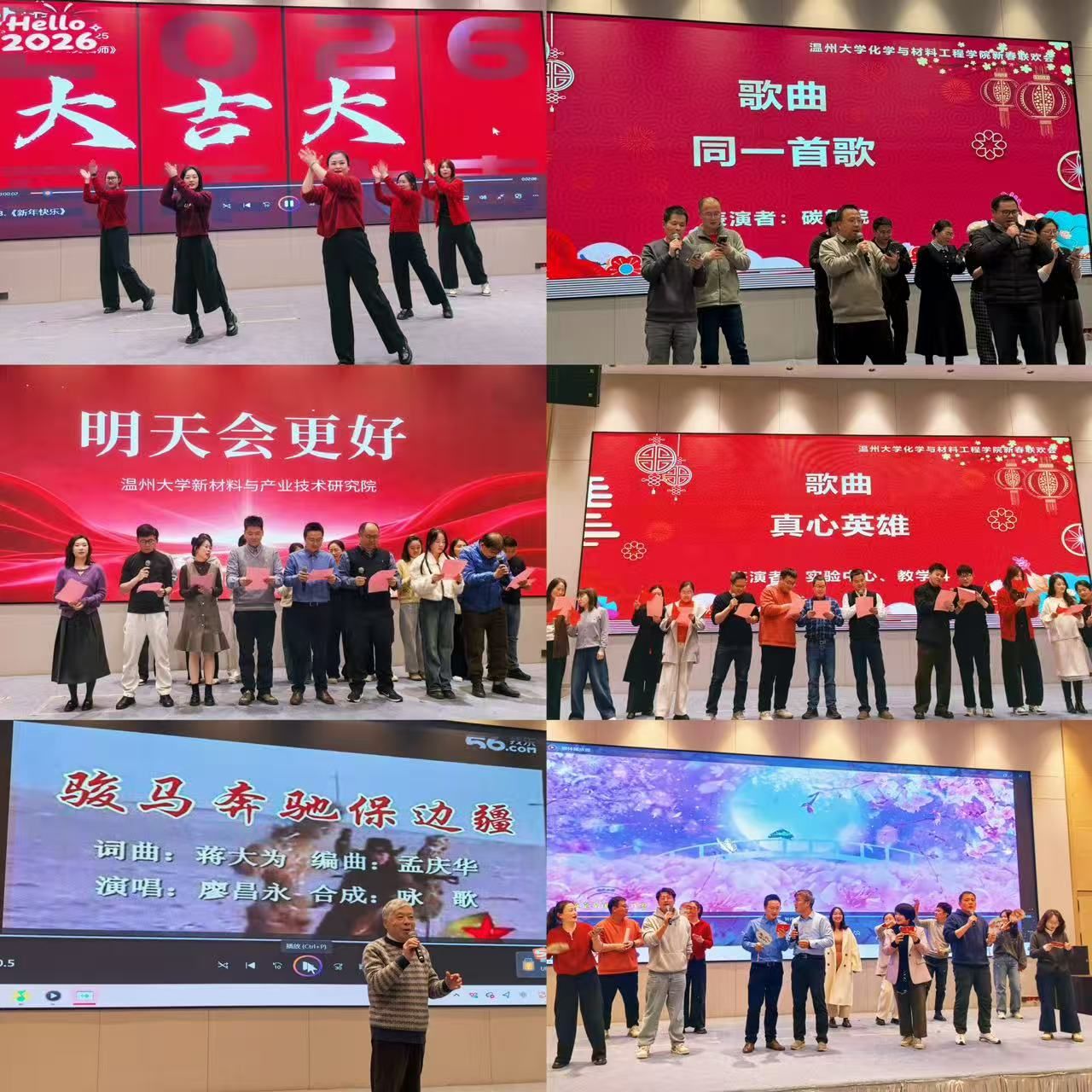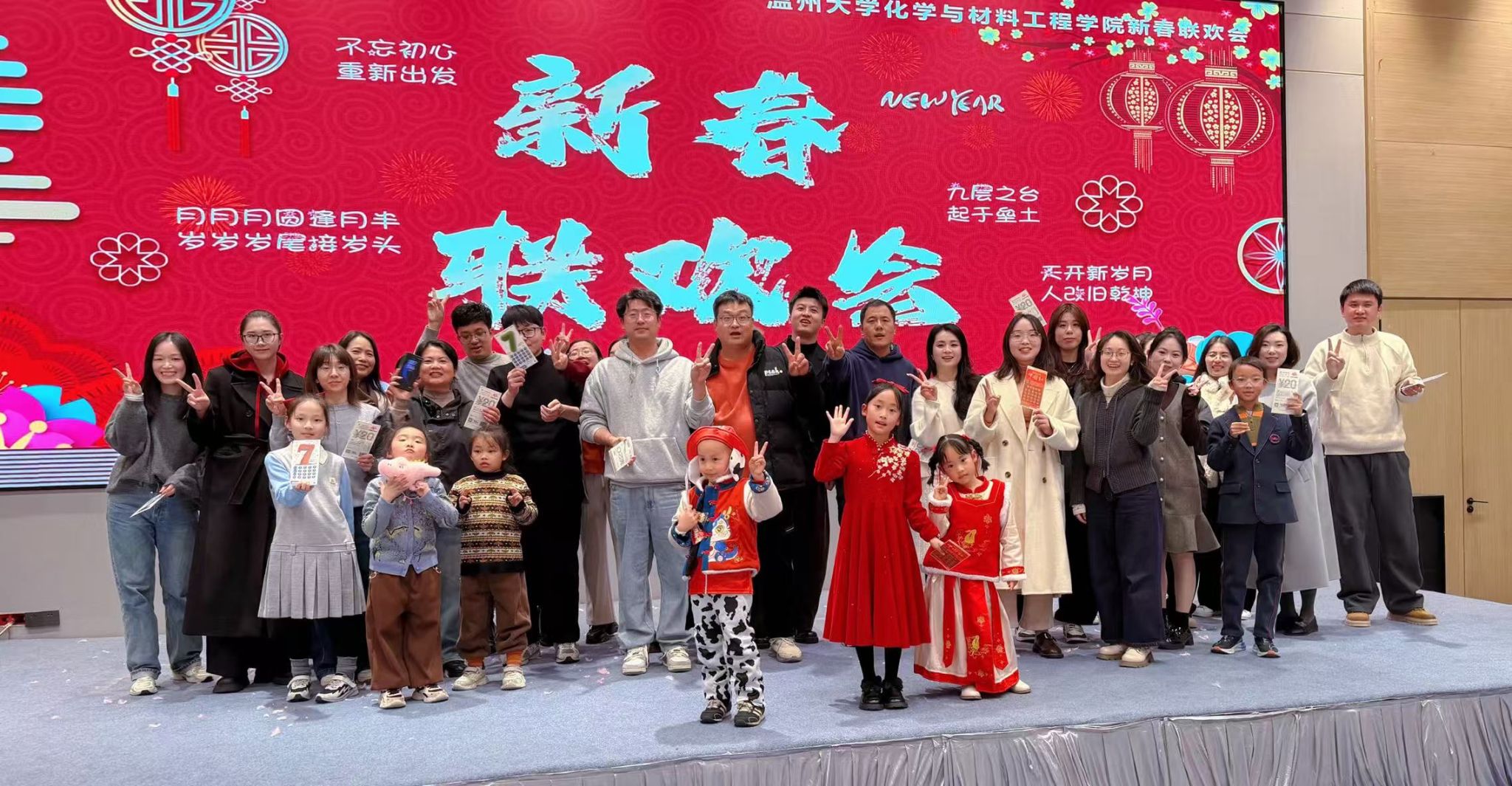 岁聿云暮,华章日新。1月20日晚,温州大学化学与材料学院“时光为马,不负韶华”2026年新春联欢会在喜庆热烈的氛围中隆重举行。学院领导班子成员、全体教职工与退休教师代表欢聚一堂,以歌传情,以笑迎新,共同为过去的一年喝彩,为崭新的征程启幕。