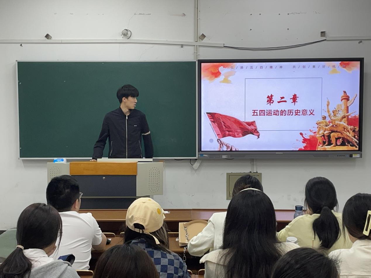 李嘉诚同学介绍了五四运动意义:五四运动表现出青年的开创精神,蕴含了青年执着的求真意识,彰显了开放的精神气度,孕育了自觉的实践品性。这些特征具有很强的时代价值。