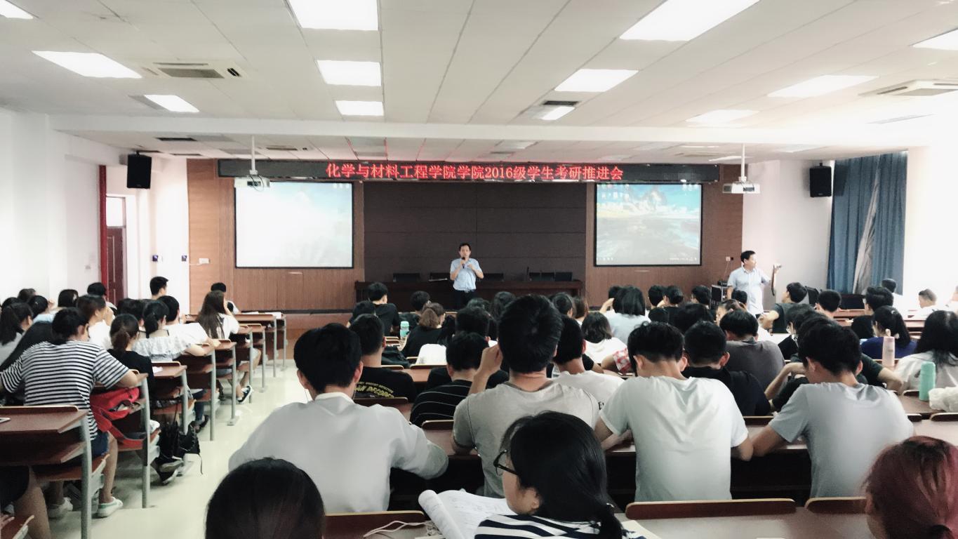 6月27日下午,化材学院在11号楼C401召开2016级考研工作推进会。学院党委书记潘从义、退休教师张力学、学生科副科长易招娣、辅导员邹涌彬等参加会议。