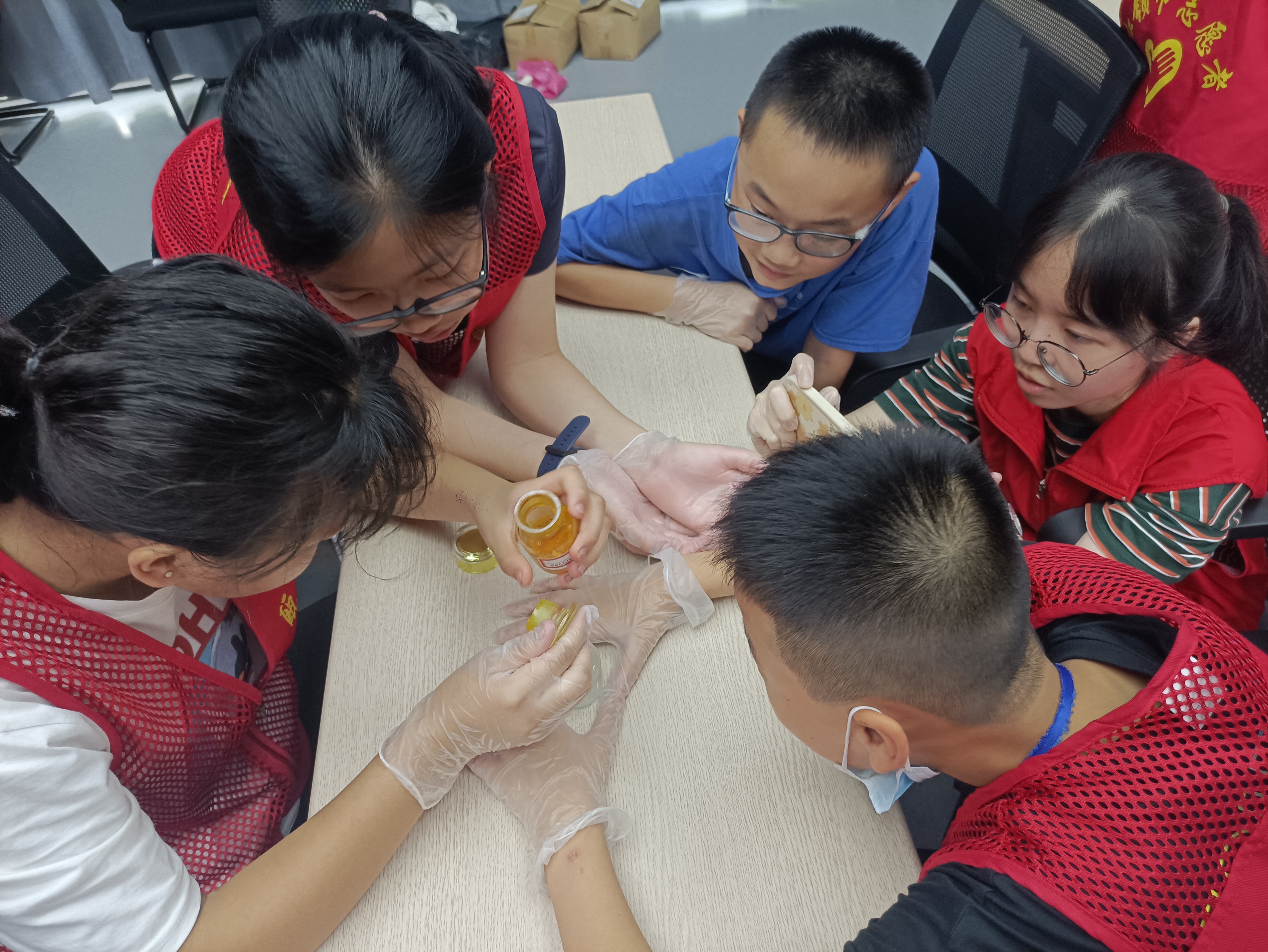 此次活动由广化街道办事处和“瓯江红”鹿城区社会组织党群服务中心主办,温州大学化学与材料工程学院“微笑天使”暑期社会实践队负责执行。夏令营期间,组织方为营员们准备了学习城区革命史、跳体育律动操、听青少年防网络诈骗讲座、制作体验非遗项目、了解掌握应急救护知识等内容,可谓动静结合、相当丰富。