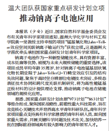 近日,国家自然科学基金委员会发布有关青年科学家项目通知,温州大学化学与材料工程学院袁一斐教授主持申报的项目“锰基氧化物Jahn-Tell⁃er效应空间关联钠离子输运行为”获批立项。这是温州大学首次牵头承担国家重点研发计划青年科学家项目。钠离子电池作为一种新型储能技术,具有资源丰富、成本低廉等优势,被视为未来大规模储能的重要选择。该项目成员平均年龄35周岁,针对钠离子电池锰基层状氧化物长期受限于Jahn-Teller(J-T)畸变效应引发的结构失效问题,聚焦于高时空分辨原位电镜技术突破、多模态表征技术协同和跨尺度关联机制研究,将为高性能锰基正极材料的设计提供理论支撑,推动钠离子电池在储能领域的规模化应用。