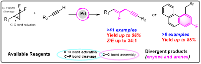 Research Focus: Develop new synthetic approach cross-coupling reactions catalysis of gem-Difluorinated Cyclopropanes toward synthesis C–C bond-formation {C(sp3)–C(sp)/C–(sp2)/C(sp3)} as well as regio- and enantioselective studies.