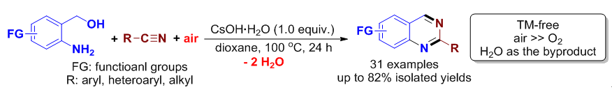 (25) Lei Yu,* Mingxuan Liu, Fenglin Chen and Qing Xu.* Heterocycles from Methylenecyclopropanes, Org. Biomol. Chem. 2015, 13, 8379-8392 (SCI-III, IF: 3.562, 外封面论文). .  (26) Xinkang Shi, Junmei Guo, Jianping Liu, Mingde Ye, Qing Xu.* Unexpectedly Simple Synthesis of Benzazoles by t-BuONa-Catalyzed Direct Aerobic Oxidative Cyclocondensation of o-Thio/Hydroxy/Aminoanilines with Alcohols under Air. Chem. Eur. J. 2015, 21 (28), 9988-9993 (SCI-II, IF: 5.731). Highlighted by Synfacts: Highlighted by as   (27) Shuangyan Li, Xiaohui Li, Qiang Li, Qiaochao Yuan, Xinkang Shi, Qing Xu.* Structure-Dependent Tautomerization Induced Catalyst-Free Autocatalyzed N-Alkylation of Heteroaryl Amines with Alcohols. Green Chem. 2015, 17 (6), 3260-3265 (SCI-II, IF: 8.02).  被X-MOL化学咨询平台亮点摘录:  (29) Xu Zhang, Jianqing Ye, Lei Yu,* Xinkang Shi, Ming Zhang, Qing Xu,* Mark Lautens. Organoselenium-Catalyzed Baeyer-Villiger Oxidation of α,β-Unsaturated Ketones by Hydrogen Peroxide to Access Vinyl Esters. Adv. Synth. Catal. 2015, 357 (5), 955-960 (SCI-II, IF: 5.663). 被Organic Chemistry Portal摘录:  (30) Qiang Li, Yao Huang, Tieqiao Chen, Yongbo Zhou,* Qing Xu, Shuang-Feng Yin,* Li-Biao Han. Copper-Catalyzed Aerobic Oxidative Amination of sp3C–H Bonds: Efficient Synthesis of 2-Hetarylquinazolin-4(3H)-ones. Org. Lett. 2014, 16 (14), 3672–3675 (SCI-II, IF: 6.364).  (31) Lei Yu,* Jun Wang, Hongen Cao, Kehong Ding, Qing Xu*, A Review on Catalyzed Dimerization of Acrylonitrile, Chin. J. Org. Chem. 2014, 37 (7), 1986-1991 (SCI, IF: 0.917).