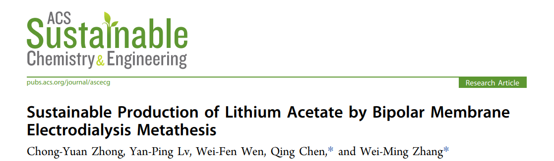 张伟明教授课题组在国际著名化学期刊《ACS Sustainable Chemistry Engineering》上发表了“Sustainable Production of Lithium Acetate by Bipolar Membrane Electrodialysis Metathesis”的论文。
