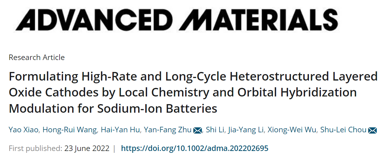 化材学院碳中和技术创新研究院侴术雷/肖遥/朱燕芳团队在国际顶级期刊《Advanced Materials》上发表题为“Formulating High-Rate and Long-Cycle Heterostructured Layered Oxide Cathodes by Local Chemistry and Orbital Hybridization Modulation for Sodium-ion Batteries”的研究论文。本文提出基于局域化学与轨道杂化定制化构筑P2/O3异质结构层状氧化物正极材料用于高倍率长循环性能钠离子电池。基于经典的P2-Na2/3Ni1/3Mn2/3O2正极材料作为概念研究模型,通过Sn元素局域取代Mn元素过渡金属位点,成功设计具有P2组成,但表现出P2/O3的反常异质结构。采用宏观和原子尺度的球差电镜表征技术进一步证实P2/O3-Na2/3Ni1/3Mn1/3Sn1/3O2 (P2/O3-NaNMS)层状异质共生结构。该正极材料表现出优异的倍率性能和循环稳定性(在2C下,循环600圈后容量保持率高达82.16%),且对硬碳负极展现出优异的兼容性。同时,P2/O3-NaNMS正极材料的煅烧形成过程与充放电过程中高度可逆的P2/O3-P2/O3/P3-P2/P3-P2/O3/P3- P2/O3动态演化过程也通过原位高温XRD与原位充放电XRD得到揭示。另外,运用理论计算从作用机制进一步阐述了Sn元素取代对材料本征的局域电子结构与轨道杂化及其结构特性和电化学行为的影响。相关研究结果发表于《Advanced Materials》(//onlinelibrary.wiley.com/doi/abs/10.1002/adma.202202695),人妻NTR