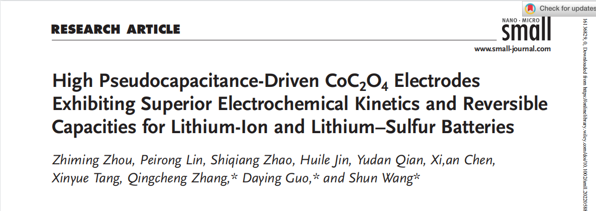 这一研究结果以“High Pseudocapacitance-driven CoC2O4 Electrodes Exhibiting Superior Electrochemical Kinetics and Reversible Capacities for Lithium-ion and Lithium-Sulfur Batteries”为题发表在国际权威期刊《Small》(IF=15.153),人妻NTR