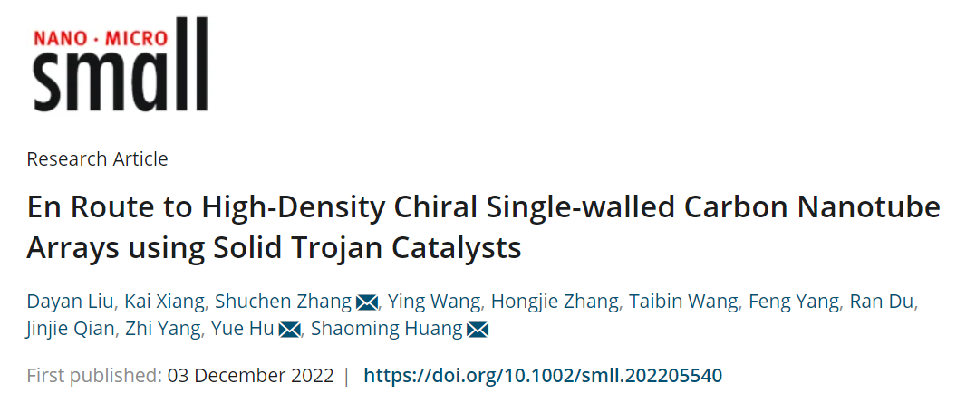 这一成果近期以“En Route to High-Density Chiral Single-walled Carbon Nanotube Arrays using Solid Trojan Catalysts”为题发表在国际期刊《Small》上,人妻NTR