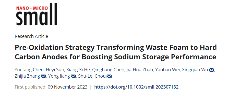 该研究以题目为“Pre-oxidation Strategy Transforming Waste Foam to Hard Carbon Anodes for Boosting Sodium Storage Performance”的论文发表在材料领域国际顶级期刊《Small》。人妻NTR