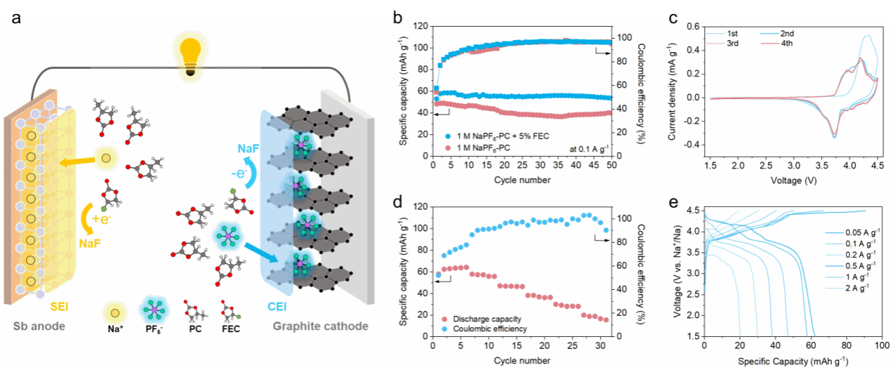 图1. Sb||石墨全电池的电化学性能