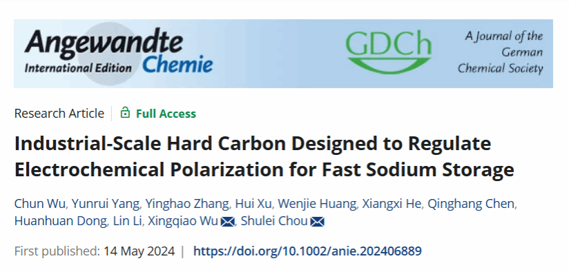 该成果以“Industrial-scale Hard Carbon Designed to Regulate Electrochemical Polarization for Fast Sodium Storage”为题,发表在Angewandte Chemie International Edition上。我院博士后吴春、2021级硕士生杨云锐为论文共同第一作者,侴术雷教授、吴星樵博士为该论文共同通讯作者,温州大学为第一通讯单位。相关工作受到国家自然科学基金、浙江省自然科学基金、温州市自然科学基金等资助。